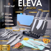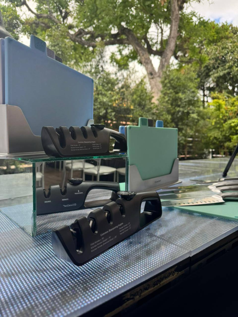 La promoción se complementa con un set de tablas de picar codificadas por color, diseñado para separar alimentos y evitar la contaminación cruzada; por otro lado, también podrá adquirir un stand magnético de alta potencia para cuchillos, que permite organizarlos de forma segura, sin dañar las hojas y manteniendo la cocina ordenada.